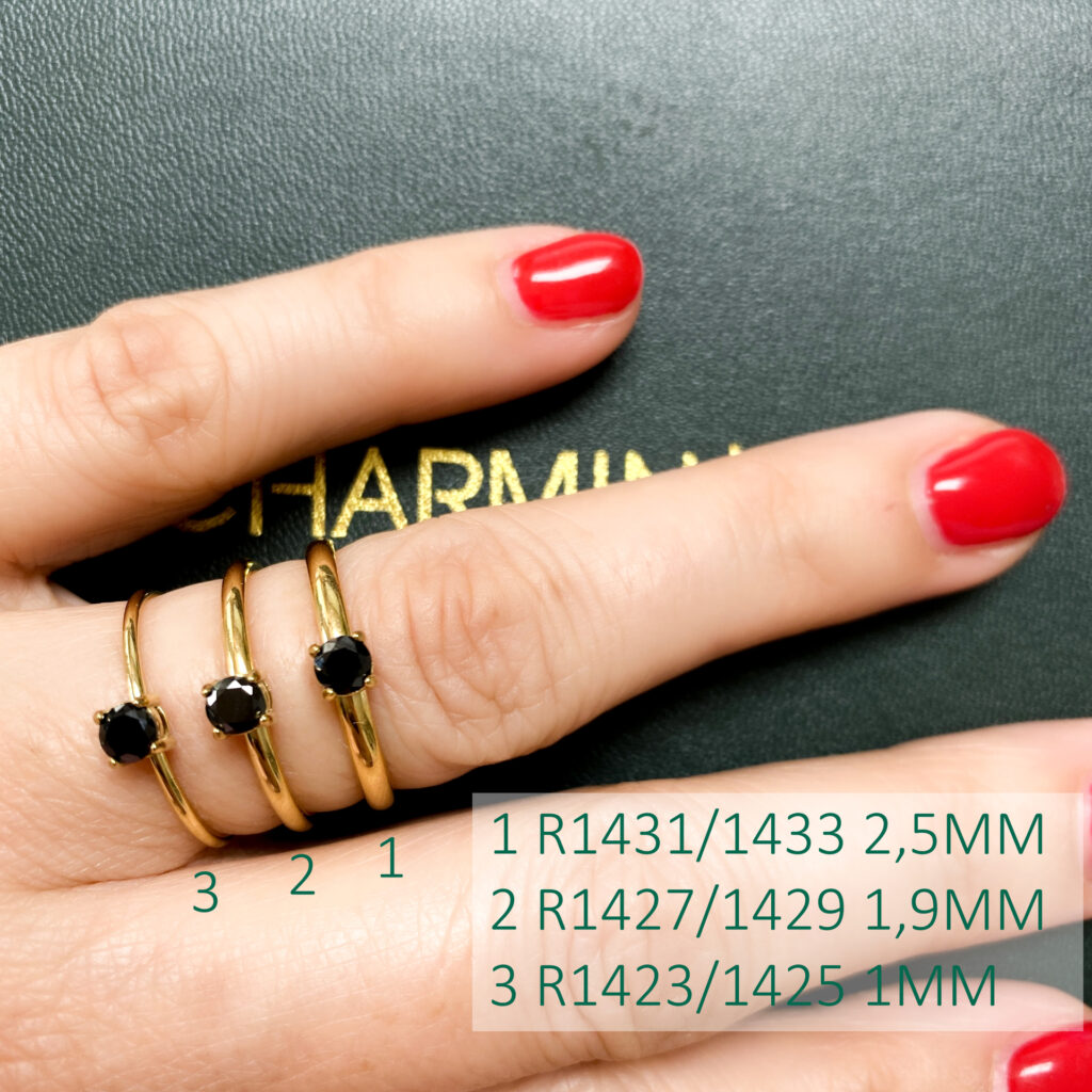 Kleuren: De ringetjes van Charmin’s zijn verkrijgbaar in staal en geel-goldplated. Sommige modellen zijn ook verkrijgbaar in rosé goldplated en zwart.