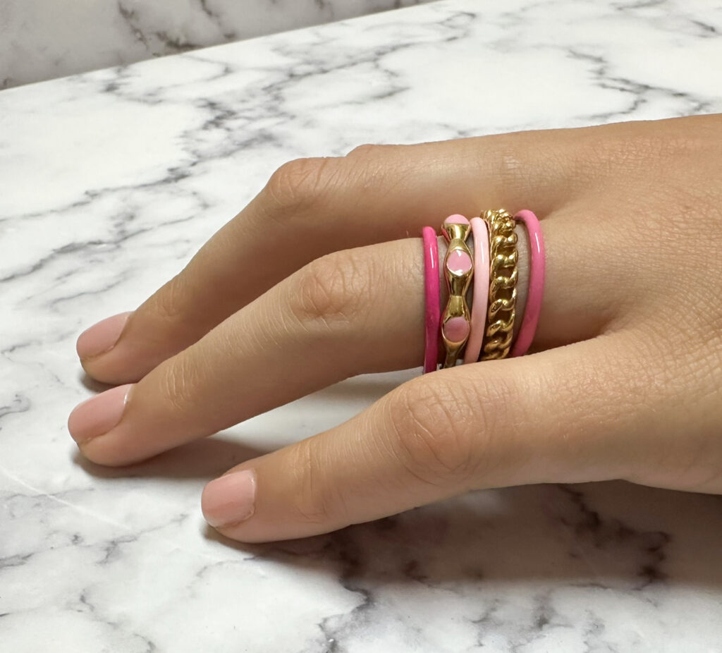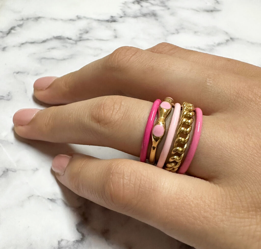 Charmin’s Lichtroze Emaille Stapelring in Edelstaal – R1613: Stijlvolle, Duurzame Ring voor Eindeloze Combinaties