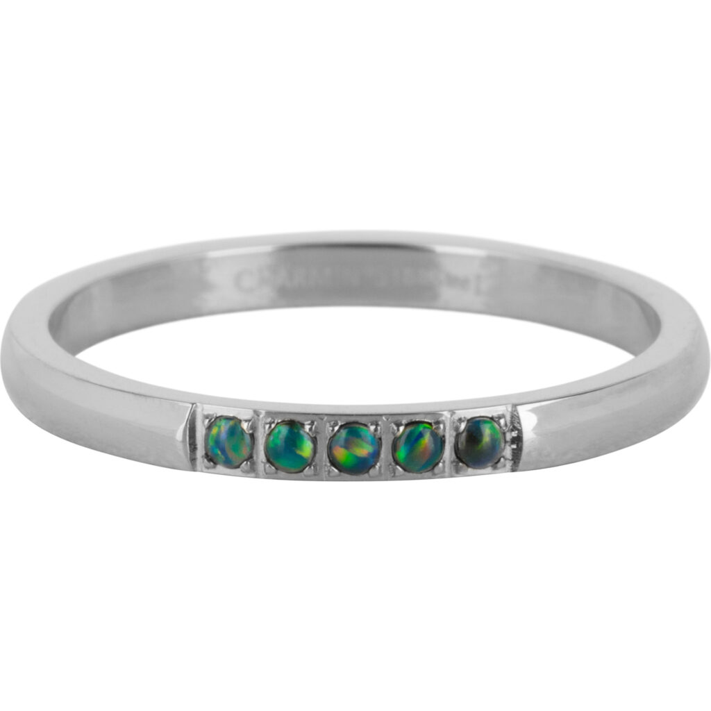 Stalen Alliance, memoire, eternity ring “R1127 5 Steentjes Donker Groen Opaal Staal” van het fashion sieradenmerk Charmin’s.