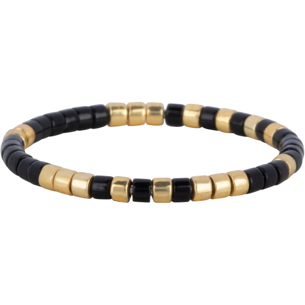 Stalen ring “Charmin’s Miyuki Beads Goud Zwart Anxiety Fidget Ring R1537” van het fashion sieradenmerk Charmin’s.