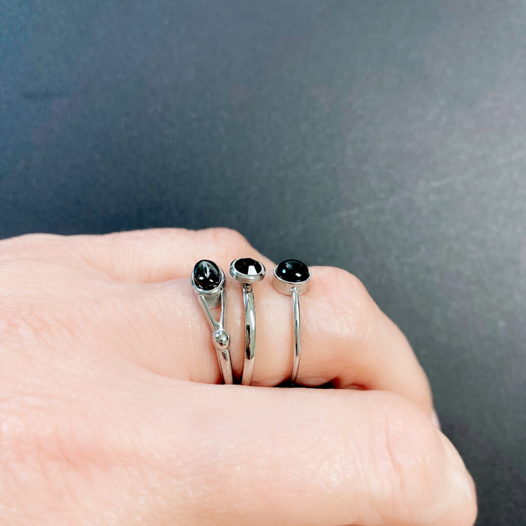 Stalen sierlijke ring met mooie opaal steen “Charmin’s Ovale Elegante Ring met Zwarte Edelsteen SGoud R1158” van het fashion sieradenmerk Charmin’s.