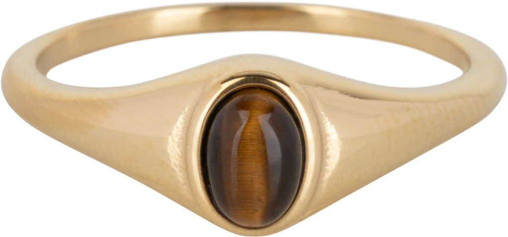 Stalen klassieke zegelring “R1079 Zegelring Ovaal Tigereye Steen Gold” van het fashion sieradenmerk Charmin’s.