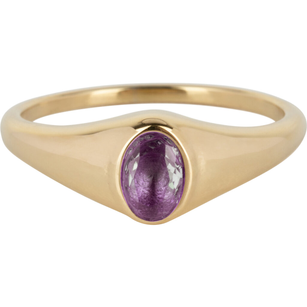 Stalen klassieke zegelring “R1084 Birthstone zegelring Februari Purple Amethyst Oval Stone Goldplated” van het fashion sieradenmerk Charmin’s.