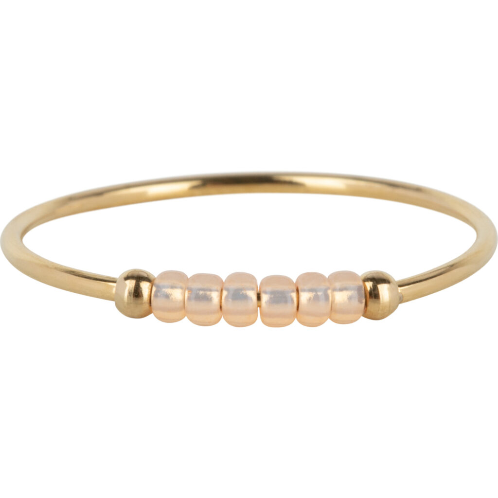 Stalen Anxiety ring “R1139 Anxiety Ring Palm Peach Pink Goldplated ” van het fashion sieradenmerk Charmin’s. Ring van 1mm versierd met 5 draaiende kraaltjes. in zachte pastel kleuren.