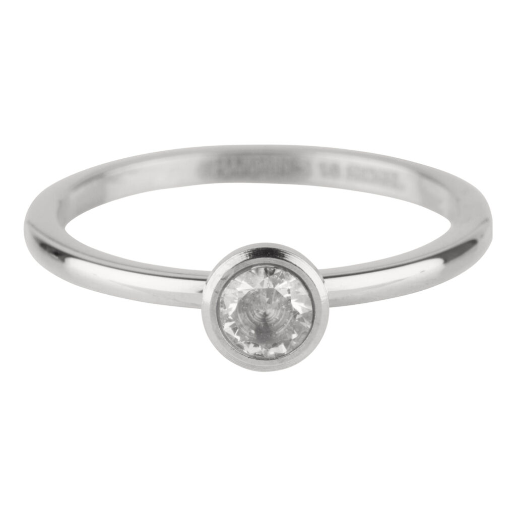 Stalen stapelring “Charmin’s Ring Birthstone April Witte Kristal Staal Iconic R488” van het fashion sieradenmerk Charmin’s.