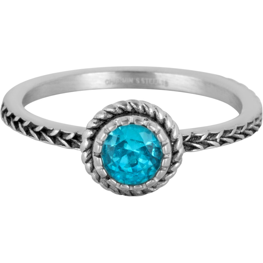 Stalen vintage ring “Charmin’s Ring Birthstone Maart LichtBlauwe Kristal Staal Iconic Vintage R1523” van het fashion sieradenmerk Charmin’s.