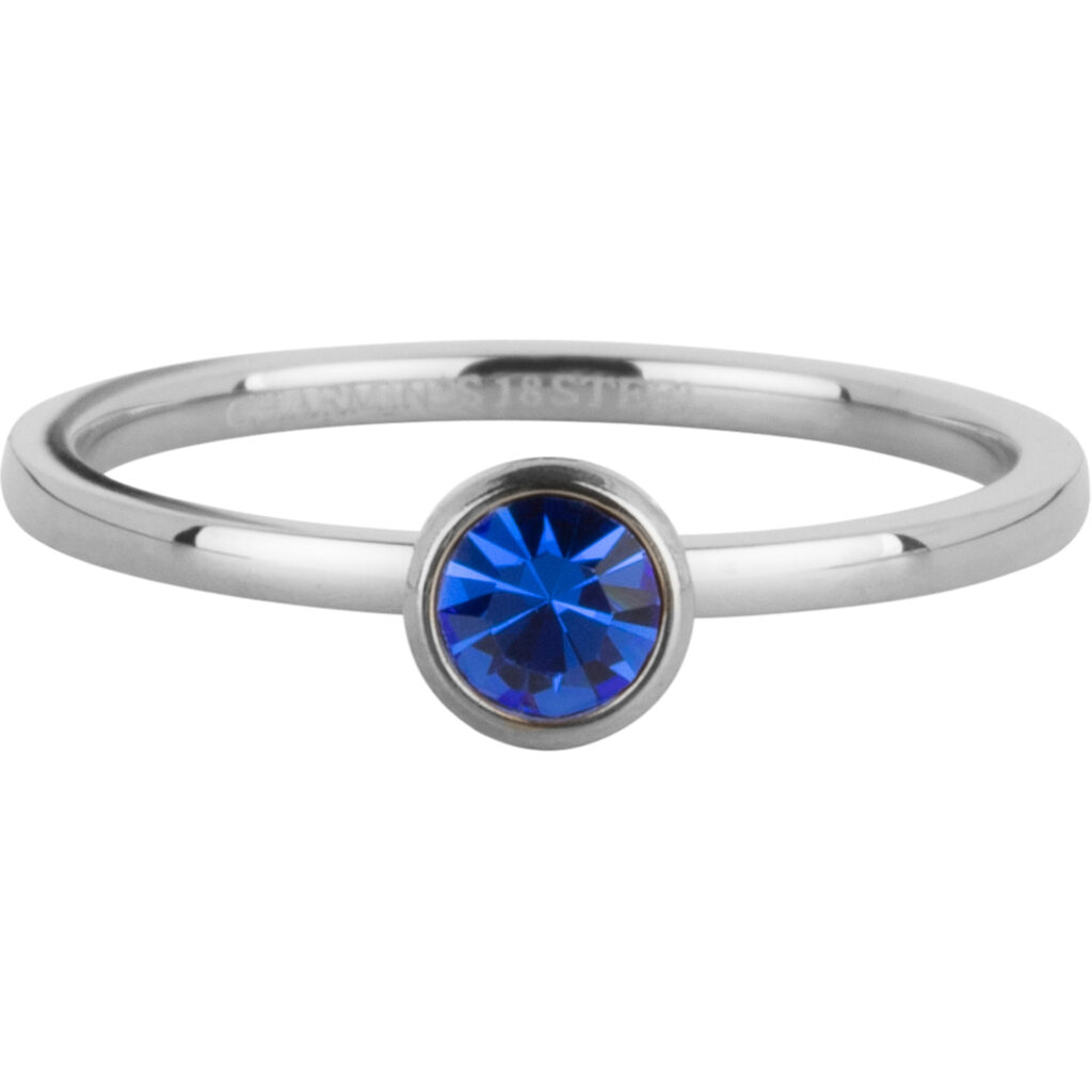 Stalen vintage ring “Charmin’s Ring Birthstone September Donkerblauwe Kristal Staal Iconic R1603” van het fashion sieradenmerk Charmin’s.