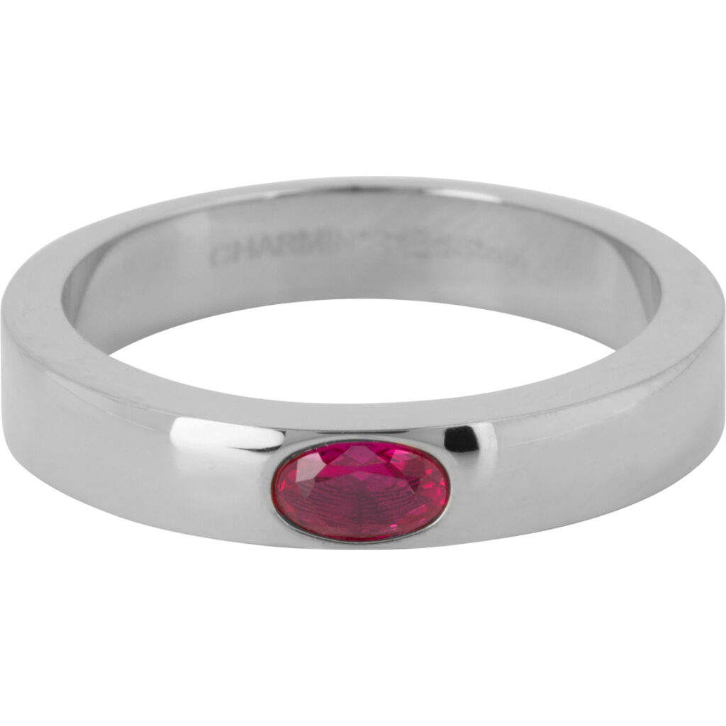 Stalen Moderne ring met een klassieke twist “Charmin’s Ring Brede Band Ovale Fuchsia-rode Steen Staal R1230” van het fashion sieradenmerk Charmin’s.