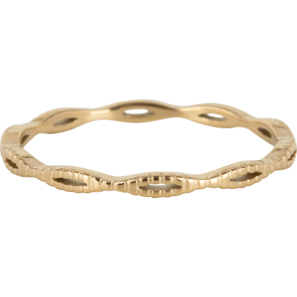 Stalen minimalistische stapelring “Charmin’s Ring Goudkleurige Open Bewerkte Ovaaltjes R1108” Van het sieradenmerk Charmin’s.