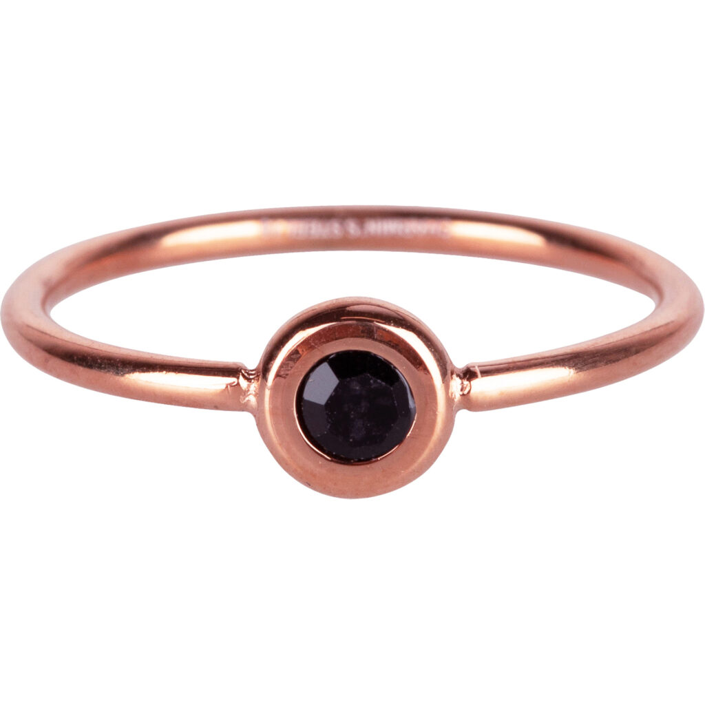Stalen ring “R958 Donut Rosegold-plated and black crystal” van het fashion sieradenmerk Charmin’s.”