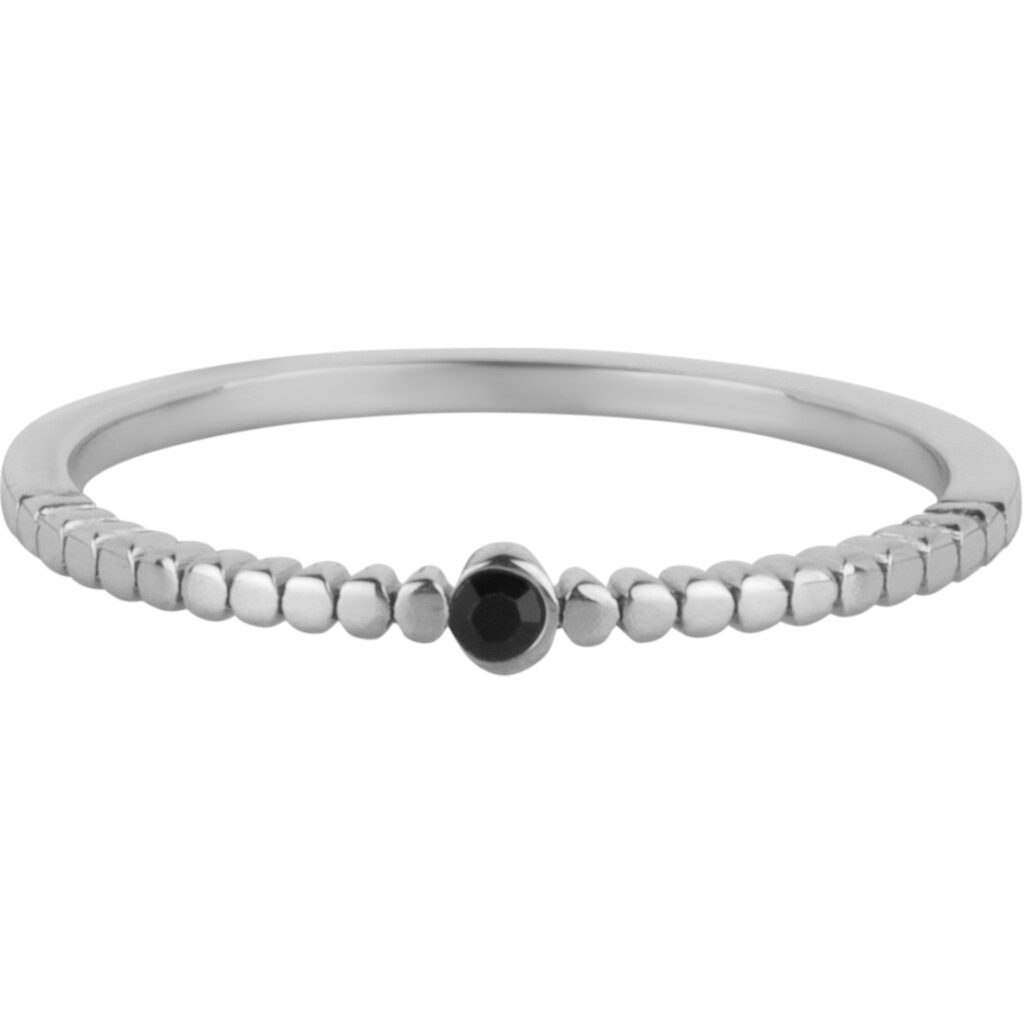 Stalen stapelring “Charmin’s Ring Zwarte Kristal Staal Iconic Vintage R1637” van het fashion sieradenmerk Charmin’s.