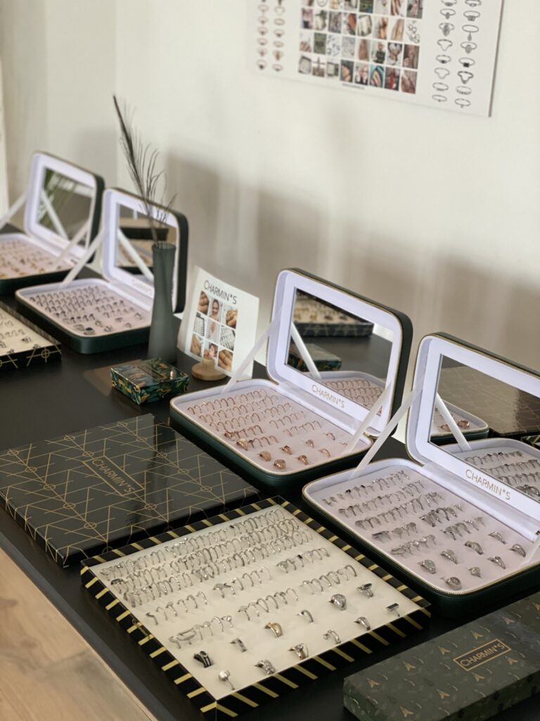 Luxe sieradendoos van Charmin’s er is plek voor 60 ringetjes. Deze prachtige box wordt ook gebruikt als displays materiaal in de winkel. Deze doos is zonder ringen.