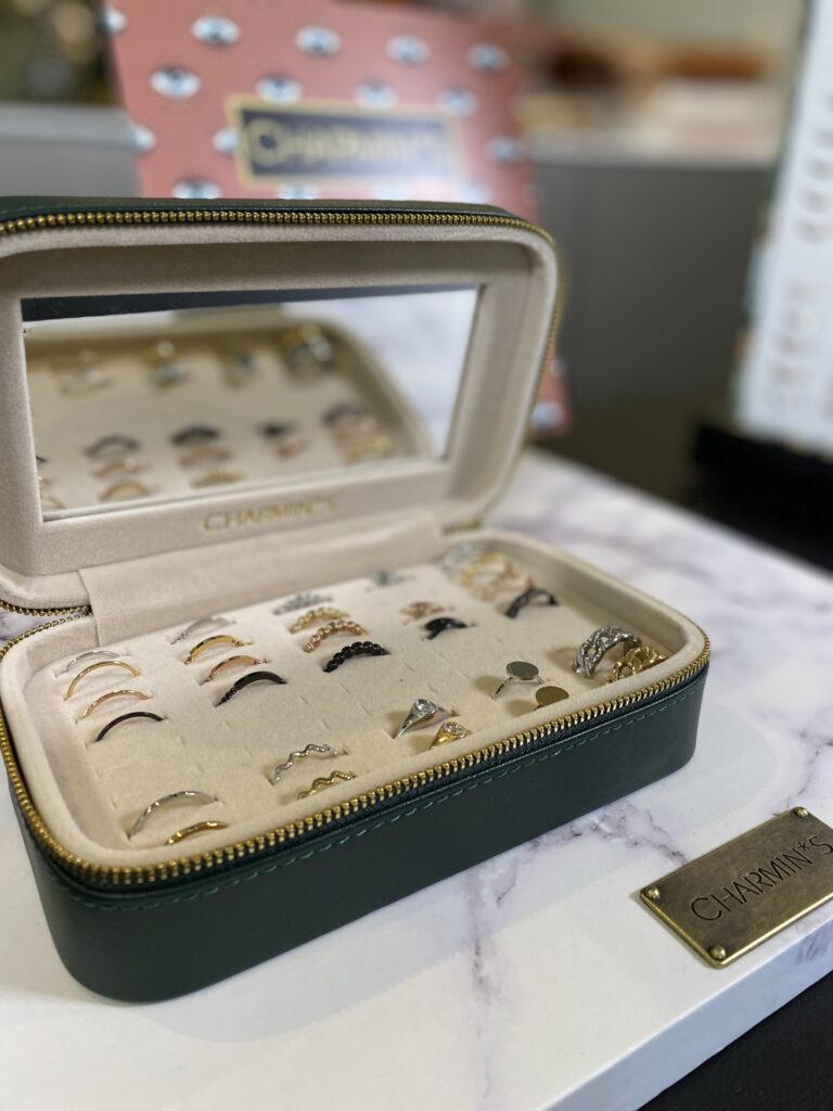 Luxe sieradendoos van Charmin’s er is plek voor 40 ringetjes. Deze prachtige box om te verkopen als bewaar box voor de ringen, wordt ook gebruikt als displays materiaal in de winkel. Deze doos is zond