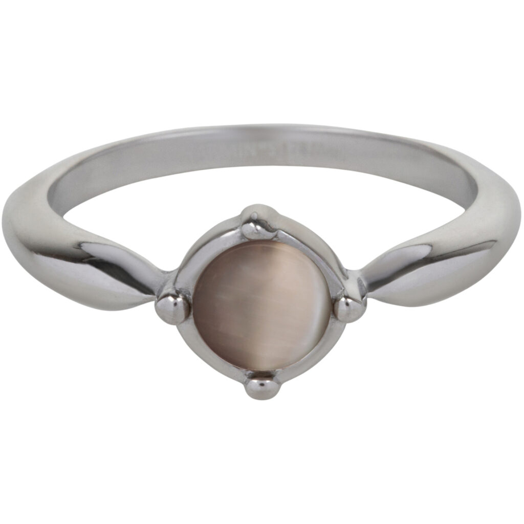 Stalen sierlijke ring met mooie Taupe-lichte bruine cat eye steen “Charmin’s Ronde Elegante Taupe Cateye Ring Staal R1170” van het fashion sieradenmerk Charmin’s.