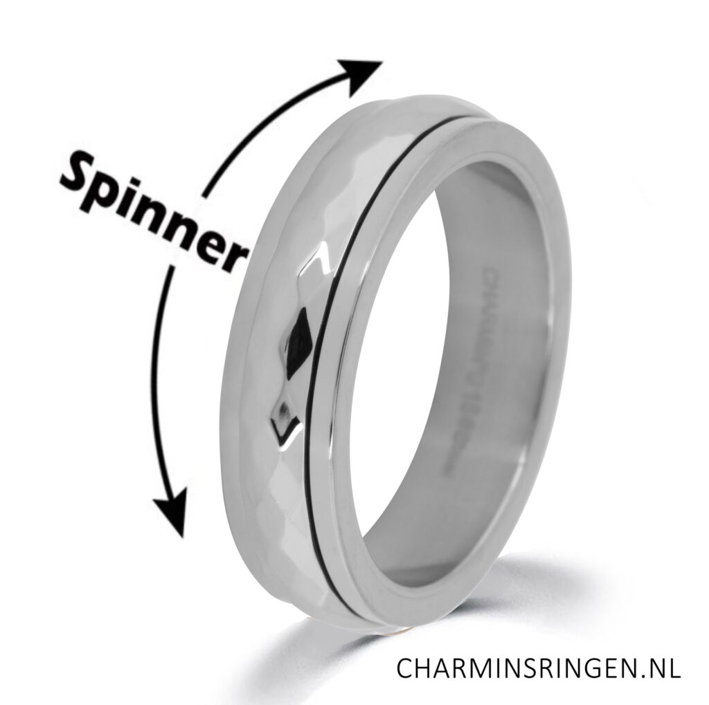 Stalen ring “Charmin’s Shiny Anxiety Fidget Ring Gehamerd Staal R1250” van het fashion sieradenmerk Charmin’s.