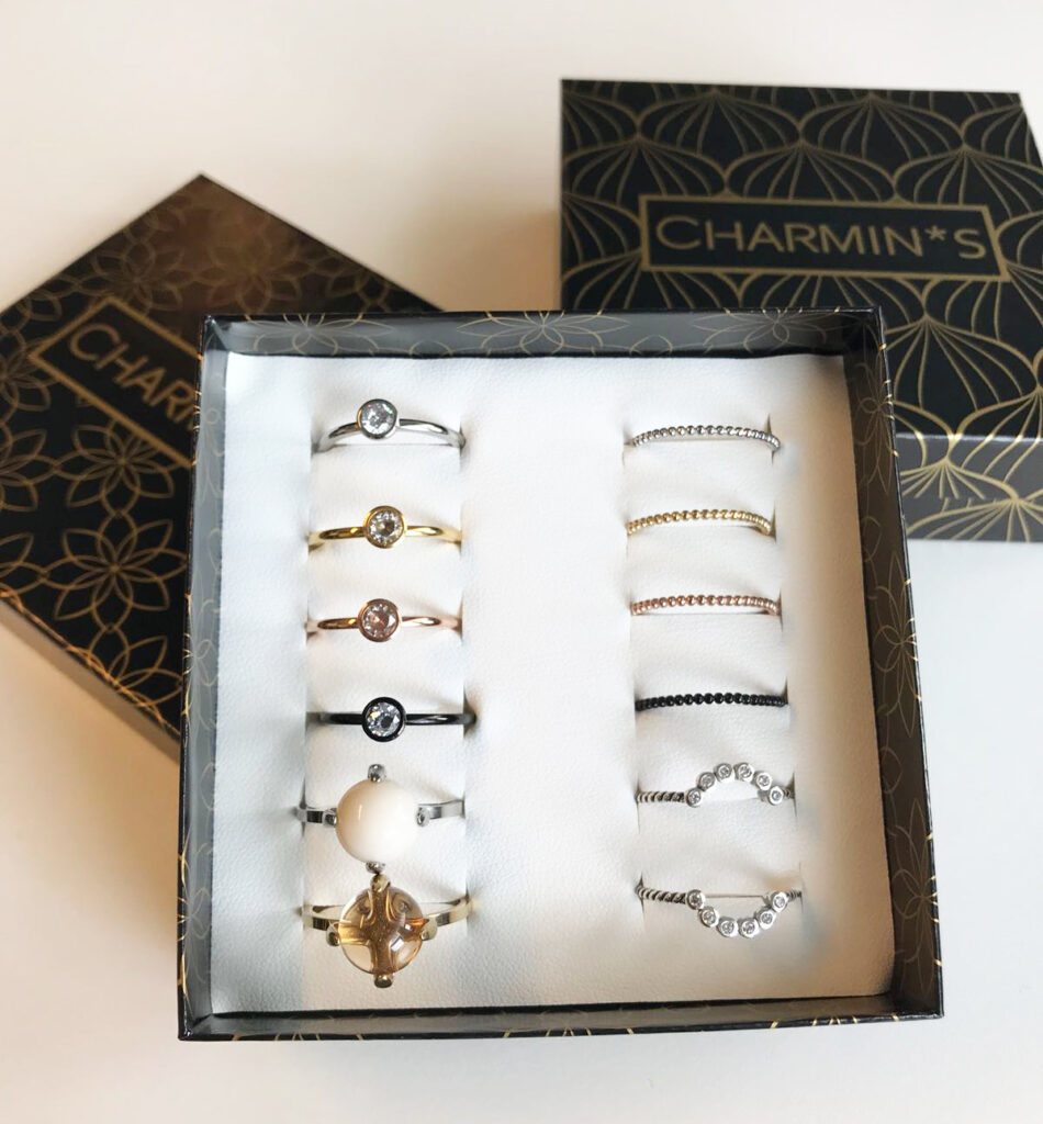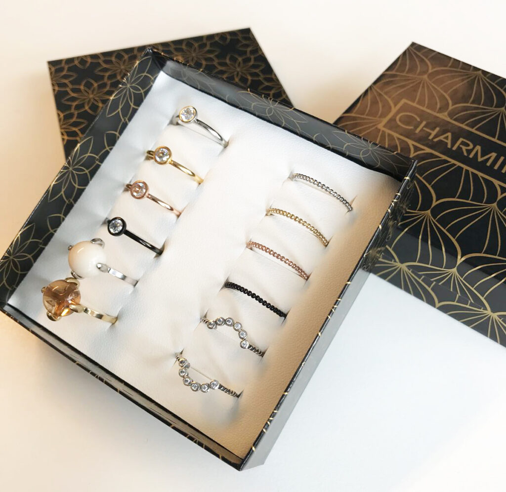 Presenteer je collectie met onze elegante kleine displaydoosjes, voorzien van een schitterende hoogglans print. Deze doosjes bieden plaats aan 12 van jouw mooiste ringen, prachtig gepresenteerd in luxe wit vegan leer.