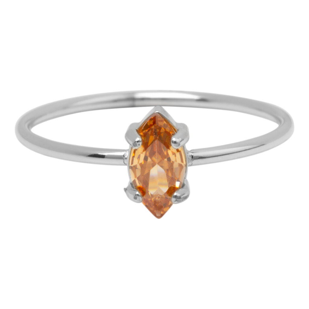 Stalen ring “Charmin’s Stalen Ring met Elipsvormig Champagne Kristal Steentje R1674 – Warme Glans” van het fashion sieradenmerk Charmin’s.