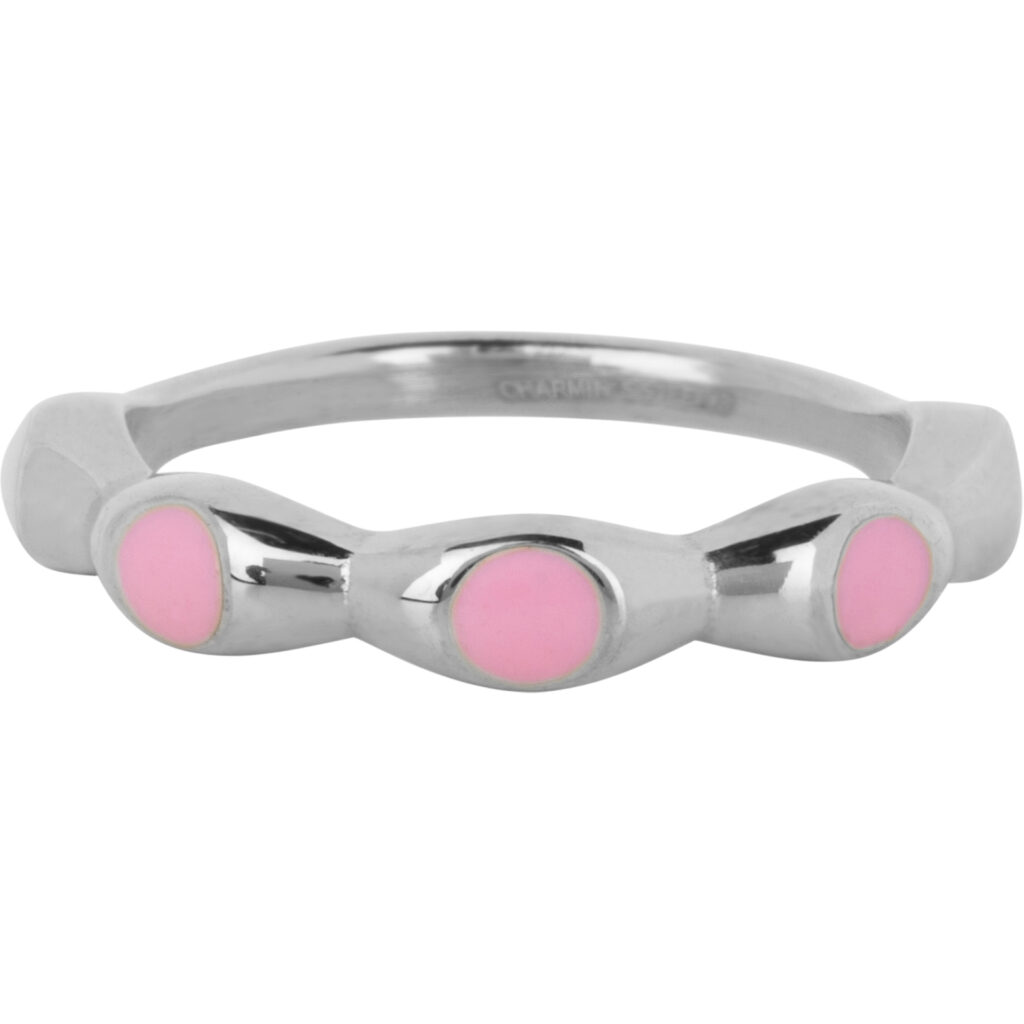 Stalen stapelring “Charmin’s stalen Ring Met Roze Ronde Emaille Bollen Staal R1495” van het fashion sieradenmerk Charmin’s.
