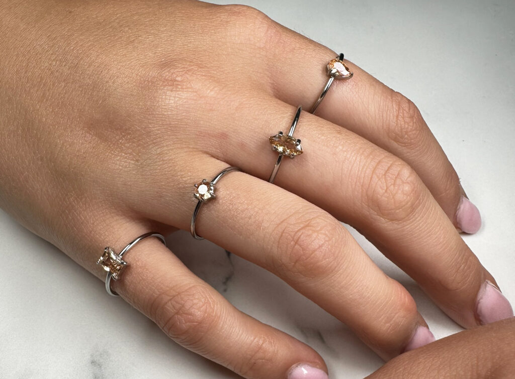 Stalen ring “Charmin’s Stalen Ring Rechthoekig Champagne Steentje R1714 – Elegant Accent” van het fashion sieradenmerk Charmin’s.