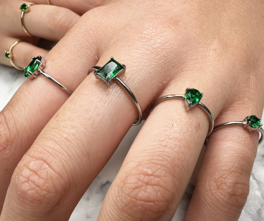 Met zijn donkergroene kristal brengt deze ring een stijlvolle natuurlook. De rechte steen en het koele staal zorgen voor een rustige elegantie.