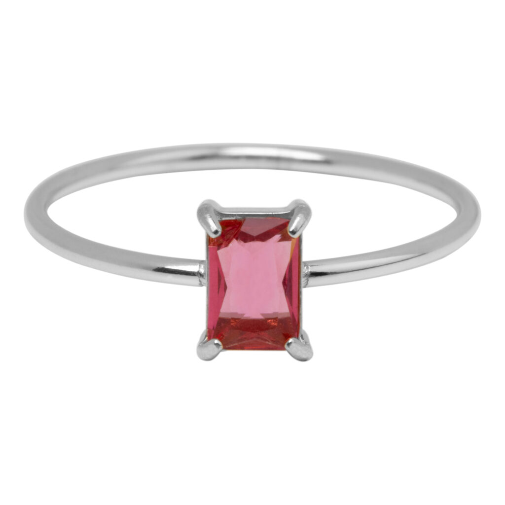 Het delicate roze kristal in rechthoekige vorm maakt deze ring een subtiele blikvanger. Perfect voor een romantische touch met een moderne twist.