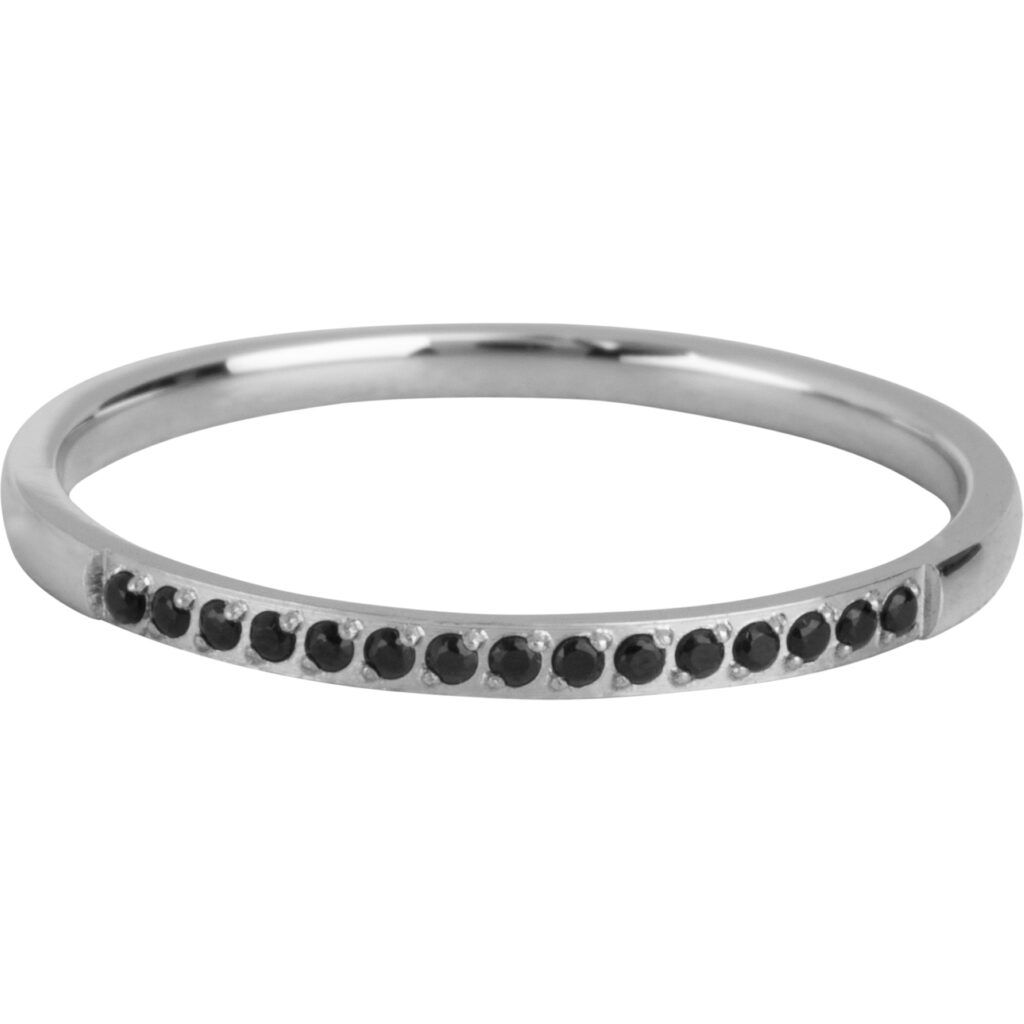 Stalen klassieke stapelring “Charmin’s Stalen Stapelring Small Alliance Zwarte Crystals R1266” van het fashion sieradenmerk Charmin’s.