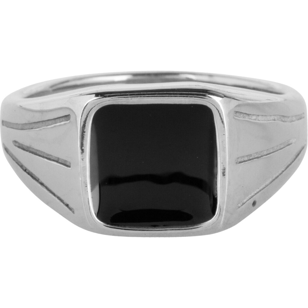 Mooie vierkante zegelring met zwarte vierkante steen, echt n toppertje.