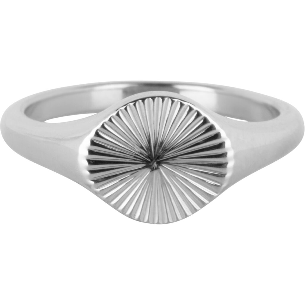 Stalen Vierkant-ovale Zegelring met prachtige gravure “Charmin’s Zegelring Gravure Sterpatroon Rond Staal R1342” van het fashion sieradenmerk Charmin’s.