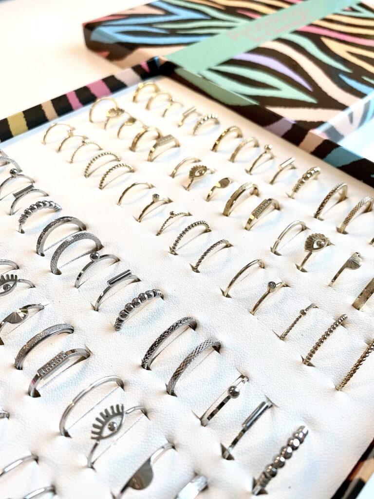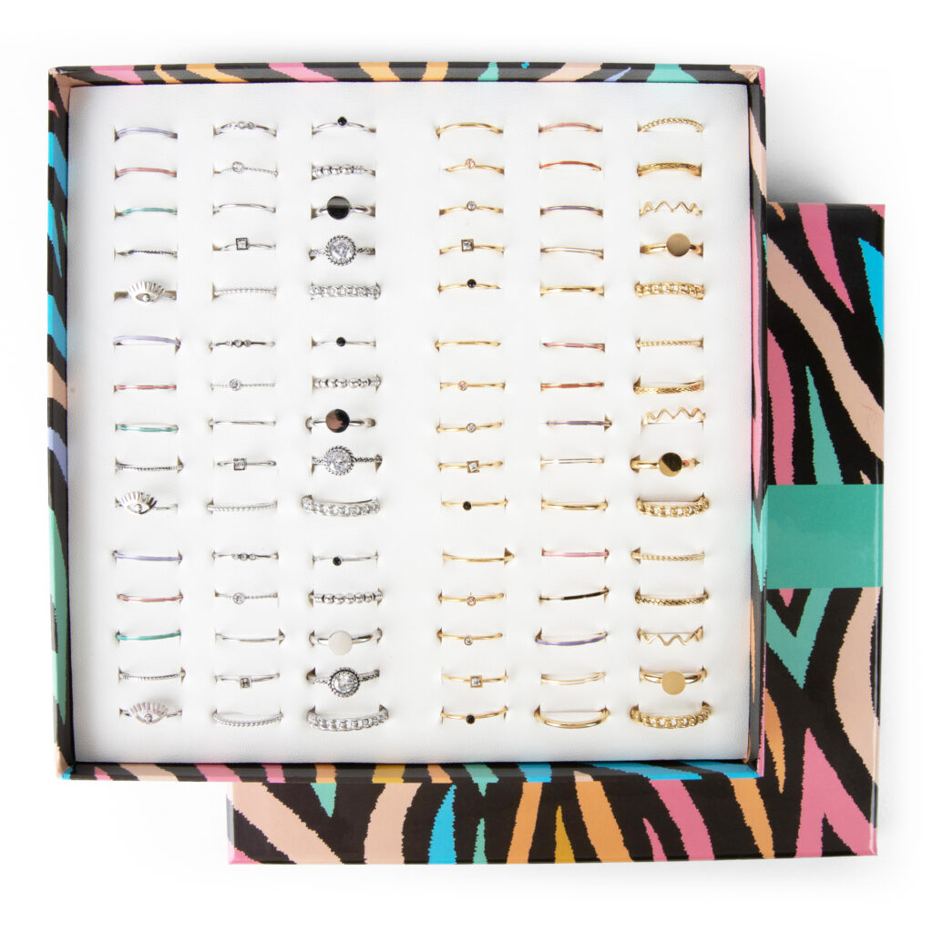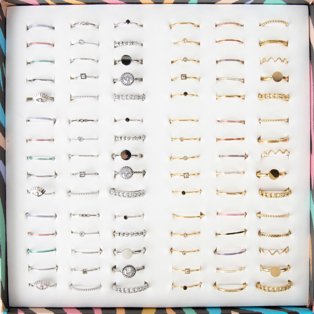 - De ringen worden al netjes in de display geplaatst.