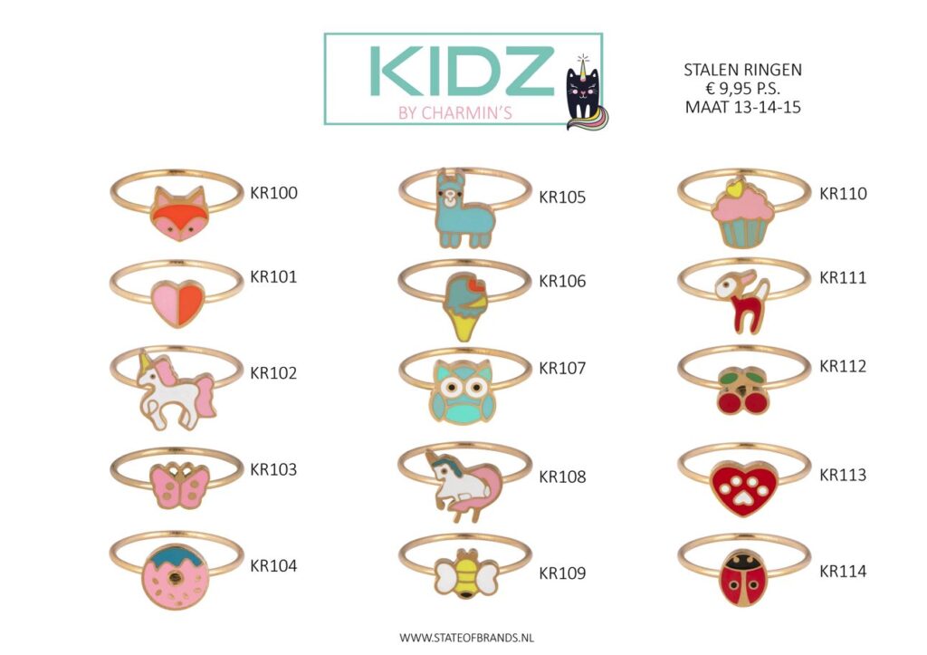 Easy Order by Charmin’s: Makkelijk de Charmin’s KIDZ Goudkleurige stalen kinderringen met lieve emaille figuurtjes Collectie bestellen.
