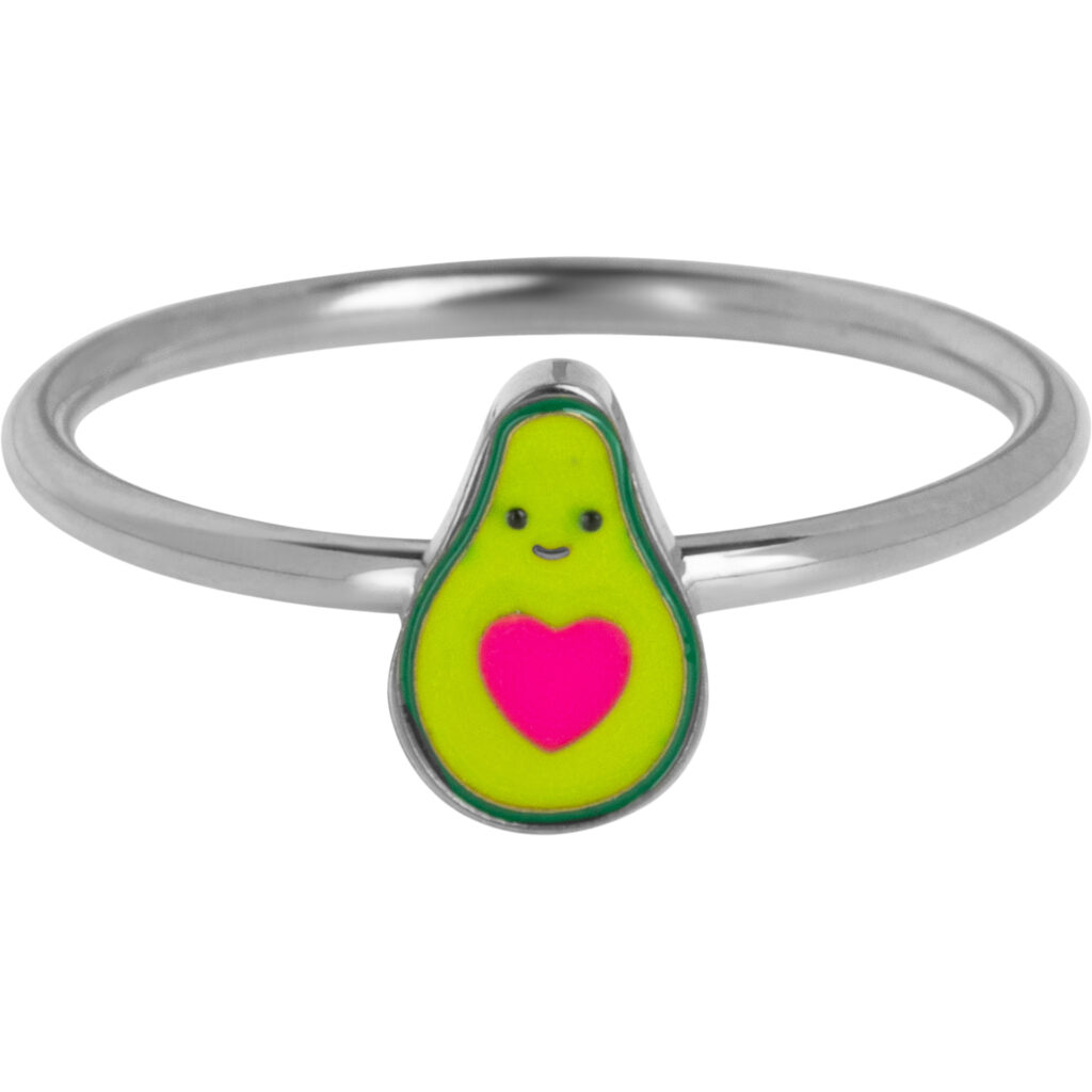 Het figuurtje van een lief kijkende avocado met een roze hartje als buikje zorgt voor een speelse en verrassende uitstraling.