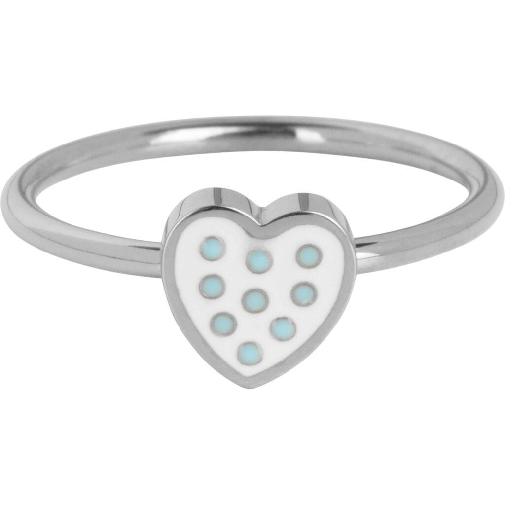 Deze KIDZ kinderring in staal heeft een hartje met wit emaille en frisse blauwe stippen. Een speelse en vrolijke ring voor jonge sieradenliefhebbers.