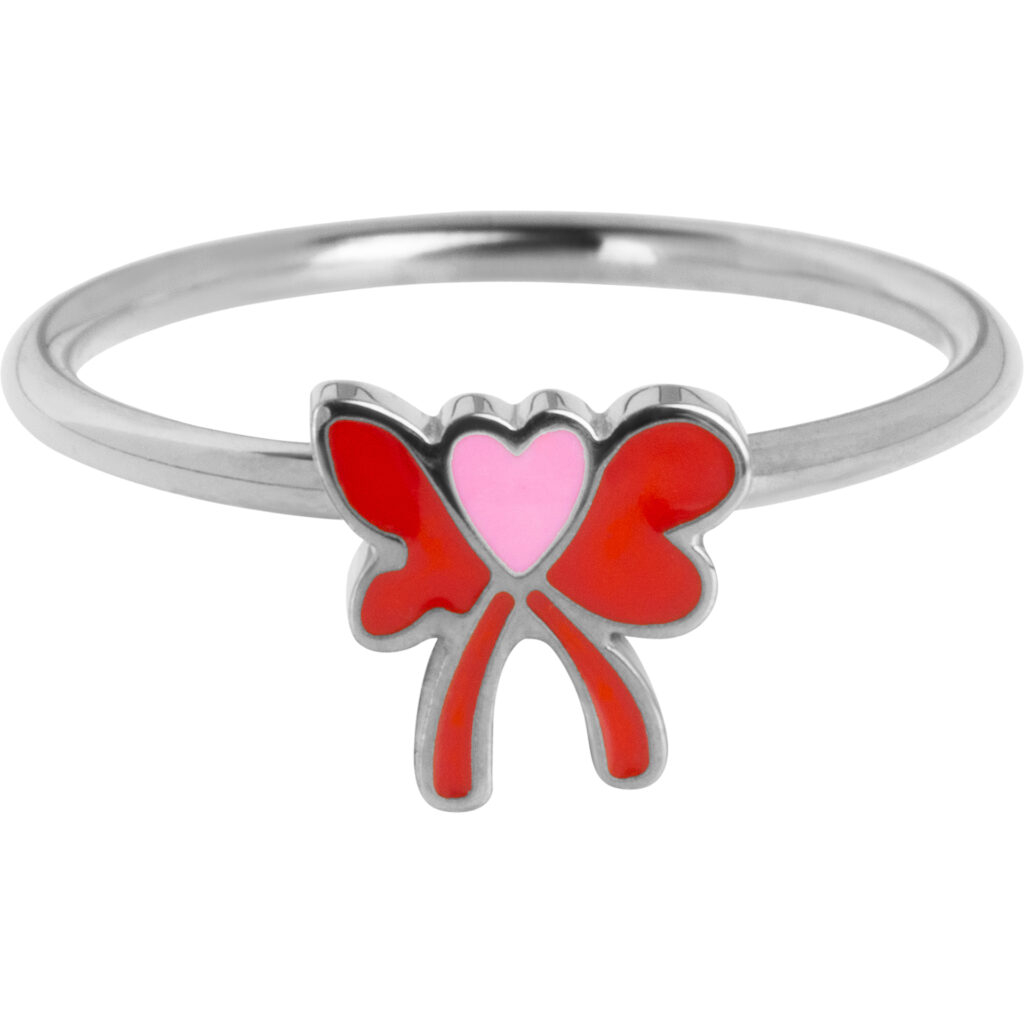 Deze schattige KIDZ kinderring in staal heeft een rood strikje met een roze hartje. Het is een speelse, modebewuste keuze voor een stijlvolle look.