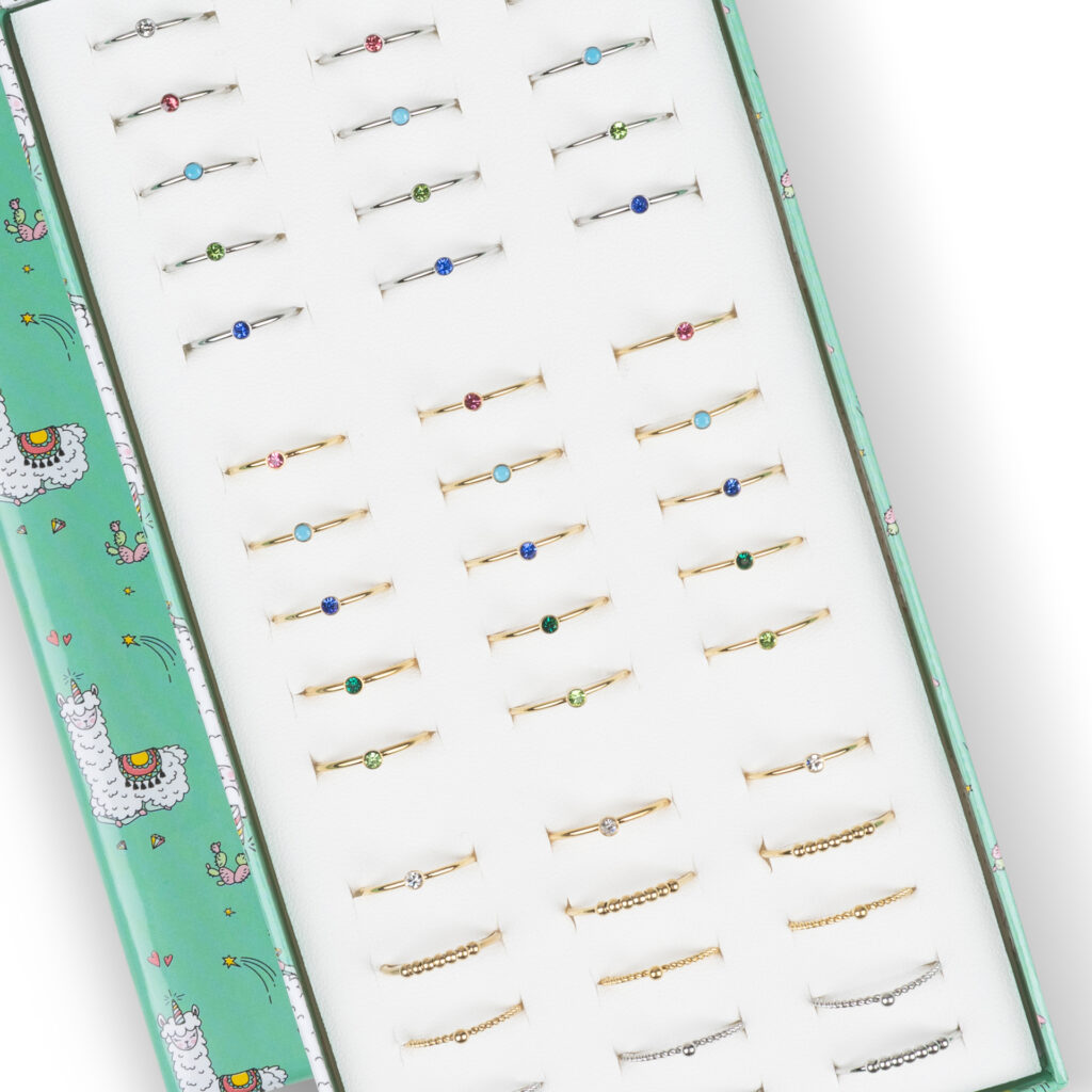 Alle ringetjes hebben een advieswinkelverkoopprijs van € 9,95 per stuk en zitten al in een display.