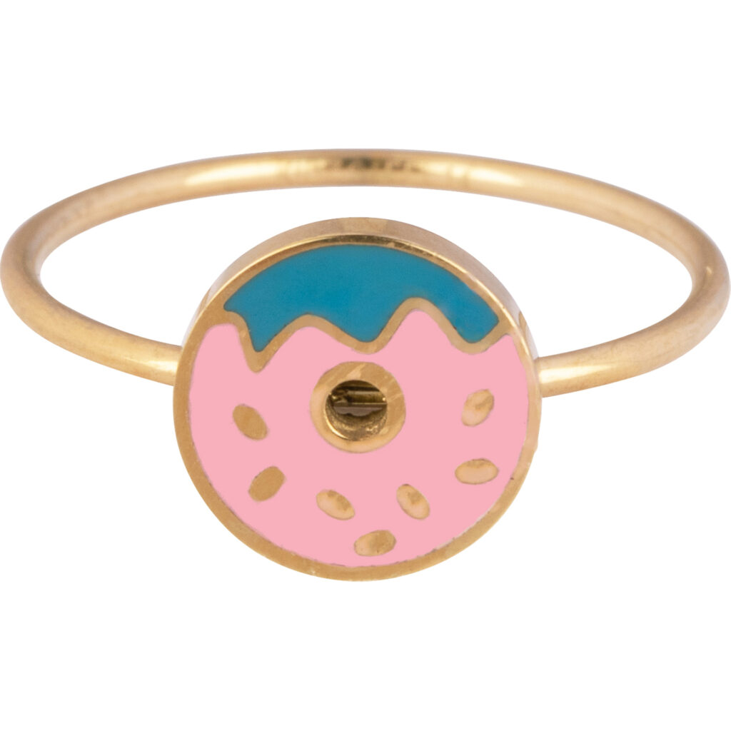Kidz By Charmins is een sieradenlijn speciaal ontworpen voor kinderen! De ringen zijn gemaakt van 316L chirurgische edelstaal met een IP plating van goud en hebben een schattig applicatietje van emaille. De ring is 1 * 1 mm, de donut 8 mm. Verkrijgbaar in de maten 13, 14 en 15mm.