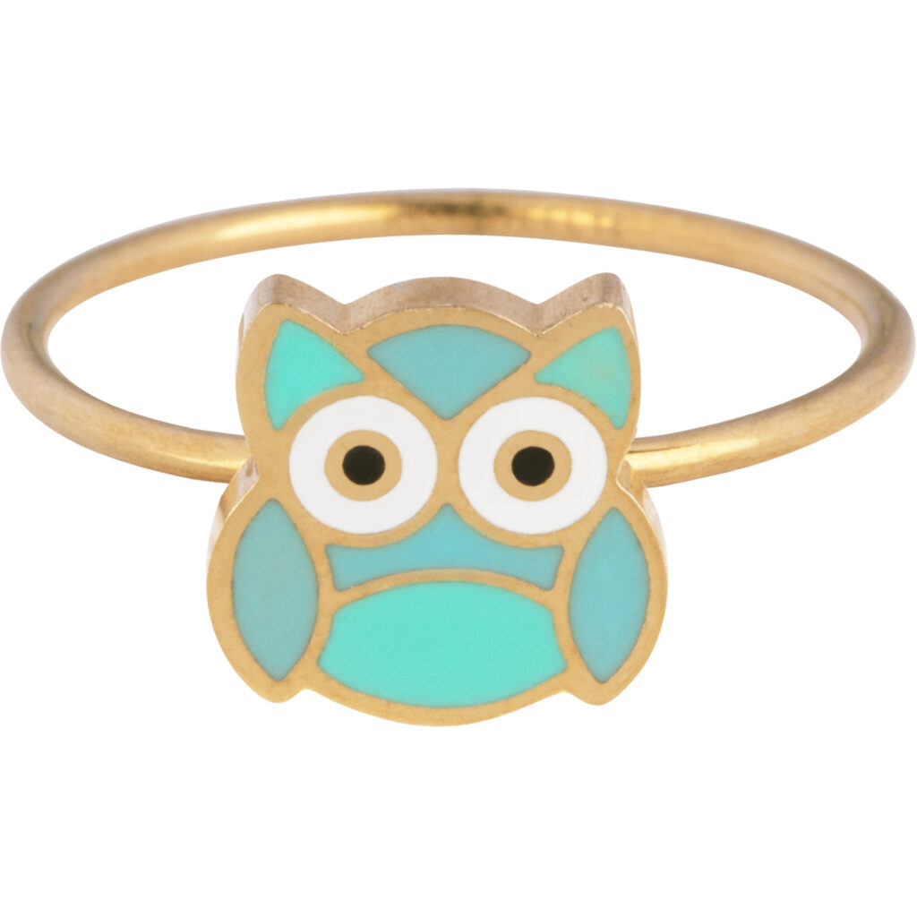 Kidz By Charmins is een sieradenlijn speciaal ontworpen voor kinderen! De ringen zijn gemaakt van 316L chirurgische edelstaal met een IP plating van goud en hebben een schattig applicatietje van emaille. De ring is 1 * 1 mm, het uiltje 9 * 9 mm. Verkrijgbaar in de maten 13, 14 en 15mm.