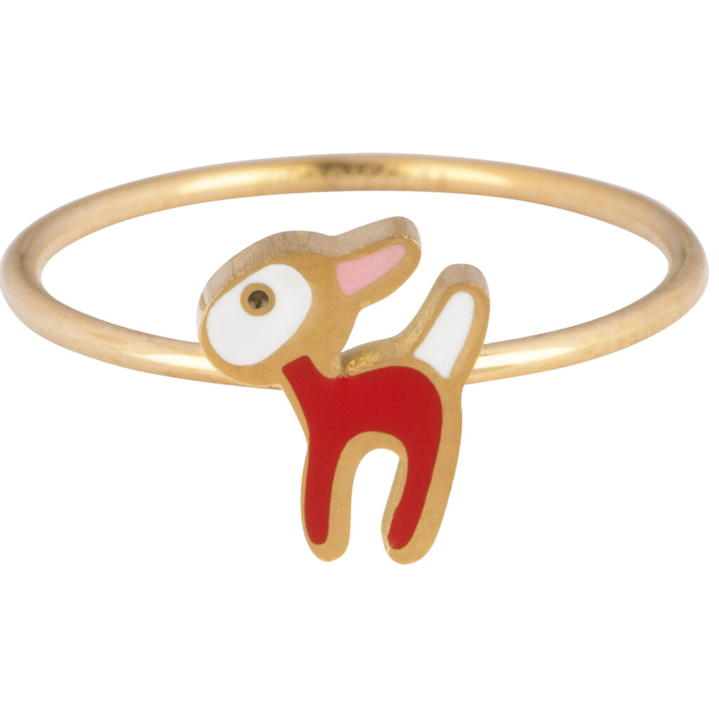 Kidz By Charmins is een sieradenlijn speciaal ontworpen voor kinderen! De ringen zijn gemaakt van 316L chirurgische edelstaal met een IP plating van goud en hebben een schattig applicatietje van emaille. De ring is 1 * 1 mm, het hertje is 9 * 6 mm. De pootjes, staartje en oortje steekt uit en is rond gepolijst. Verkrijgbaar in de maten 13, 14 en 15mm.