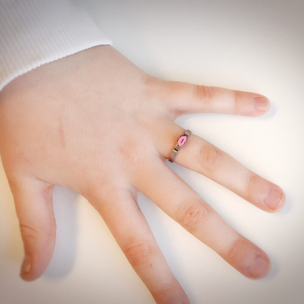 Stalen kinderring KR59 Kiss Pink Shiny Steel van het merk KIDZ.