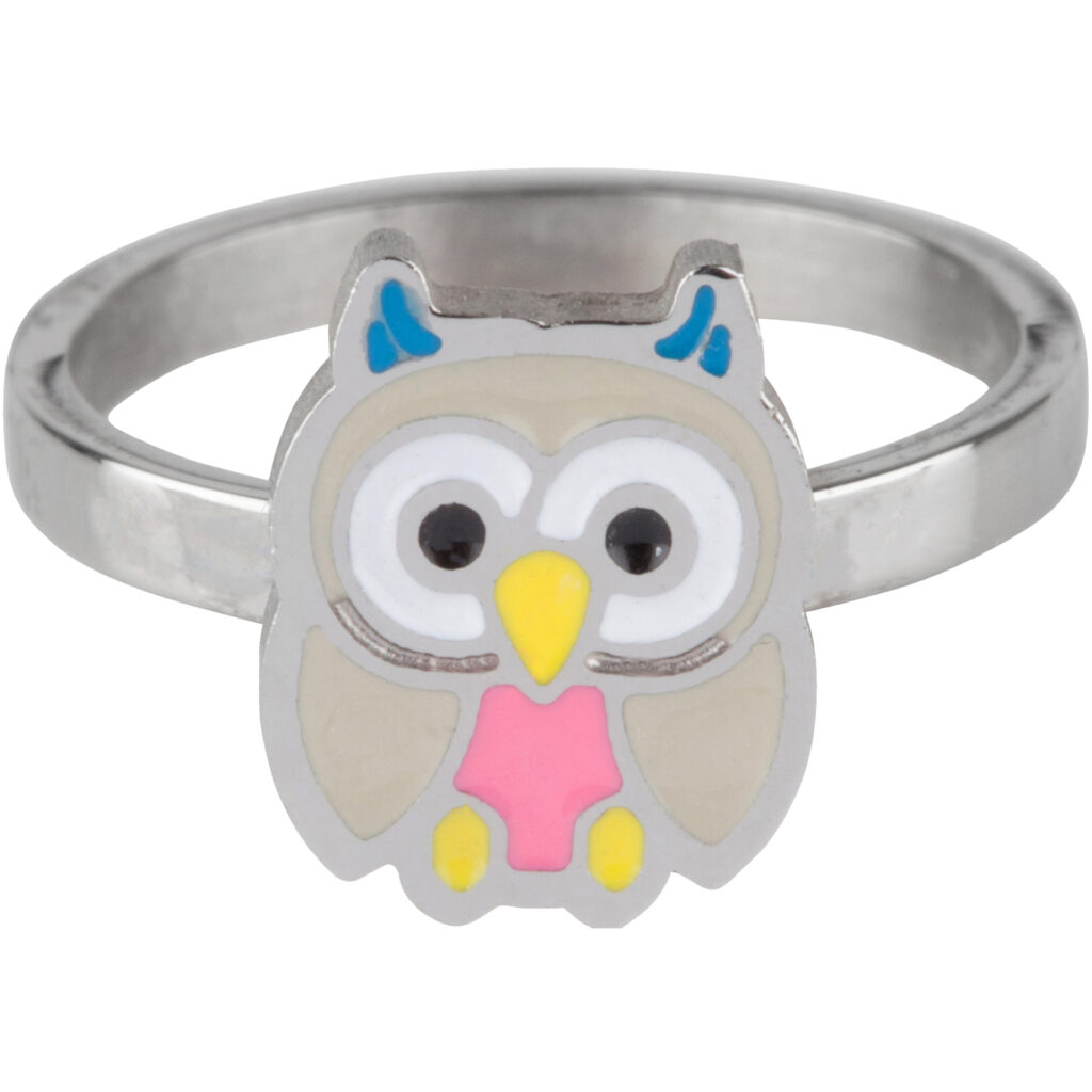 Stalen kinderring KR62 Owl Shiny Steel van het merk KIDZ.
