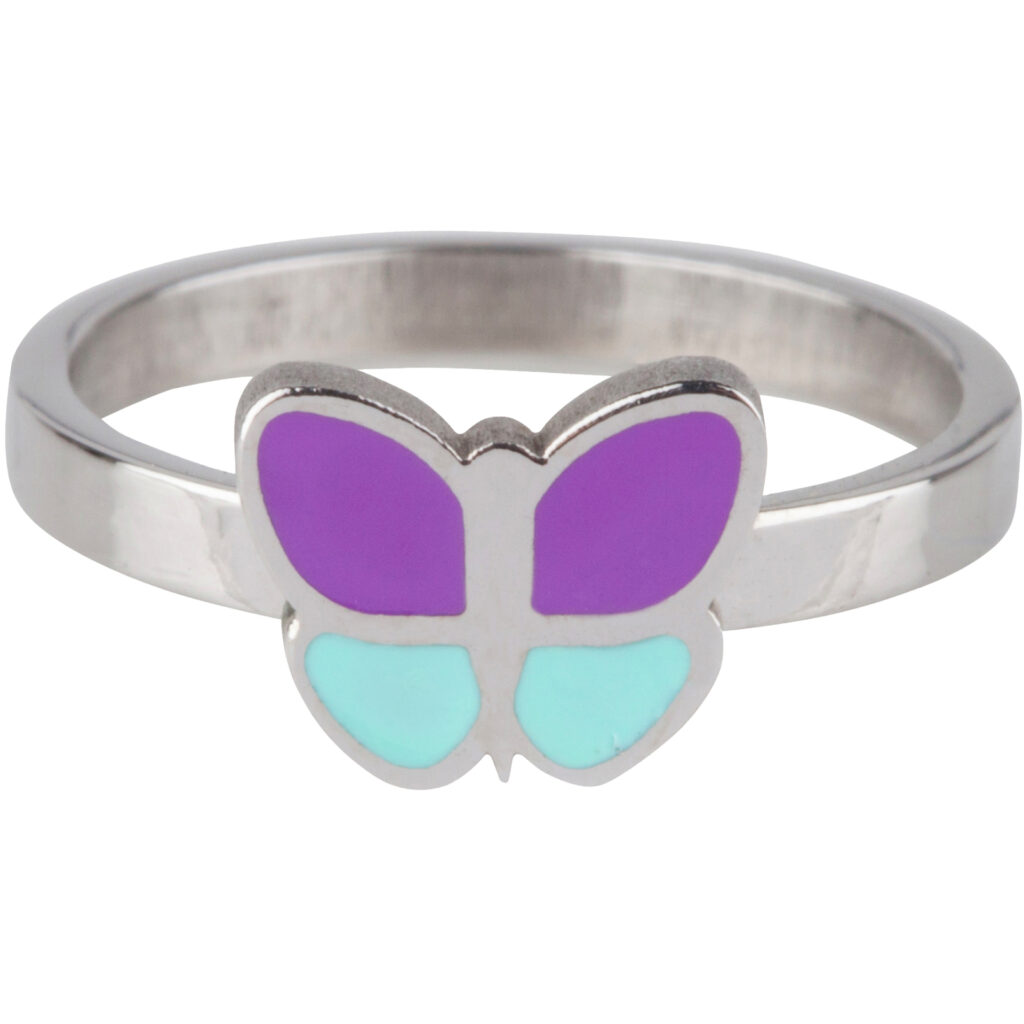 Stalen kinderring KR79 Butterfly Purple Blue Shiny Steel van het merk KIDZ.