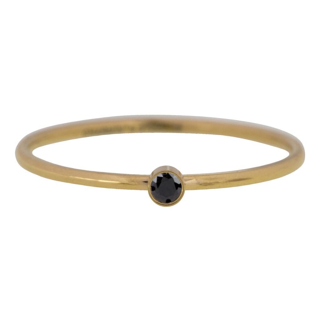 Stalen stapelring “R493 Shine Bright 2.0 gold Steel with black crystal” van het fashion sieradenmerk Charmin’s.