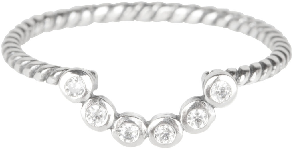 Zilveren stapelring R562 Silver Twisted Barock Crystal Stones van het fashion sieradenmerk Charmin’s.