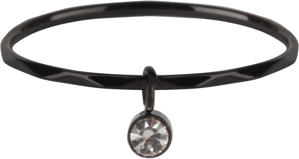 Stalen minimalistische (stapel)ring “R579 Dangling Crystal CZ Black Steel” van het fashion sieradenmerk Charmin’s.