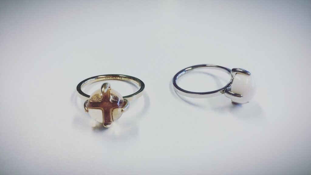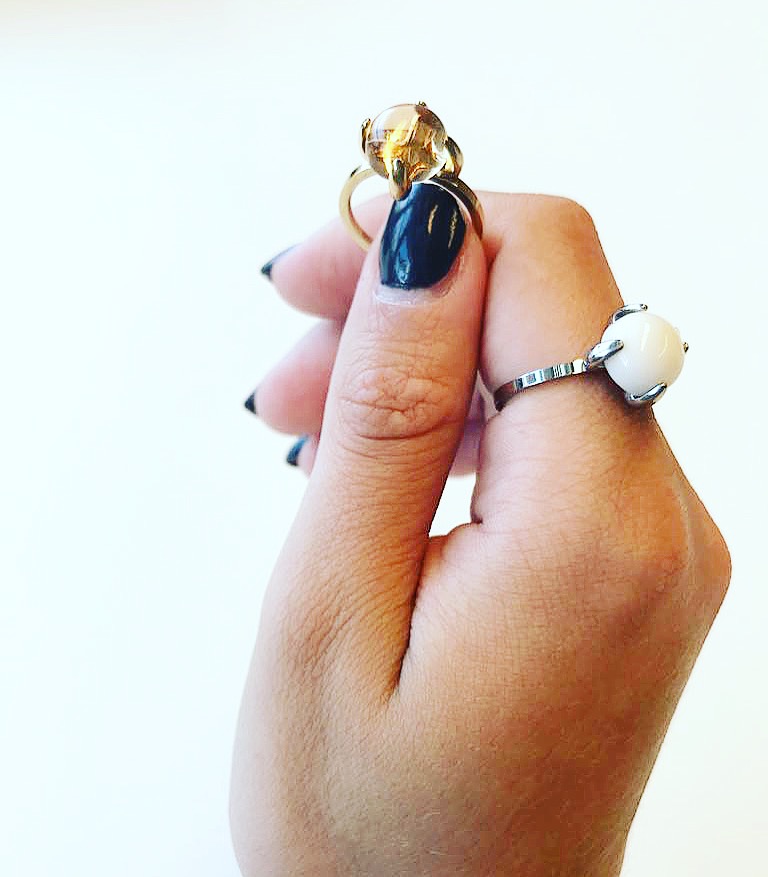 Stalen stapelring R582 Big Rock Shiny Steel Milky White Stone van het fashion sieradenmerk Charmin’s.
