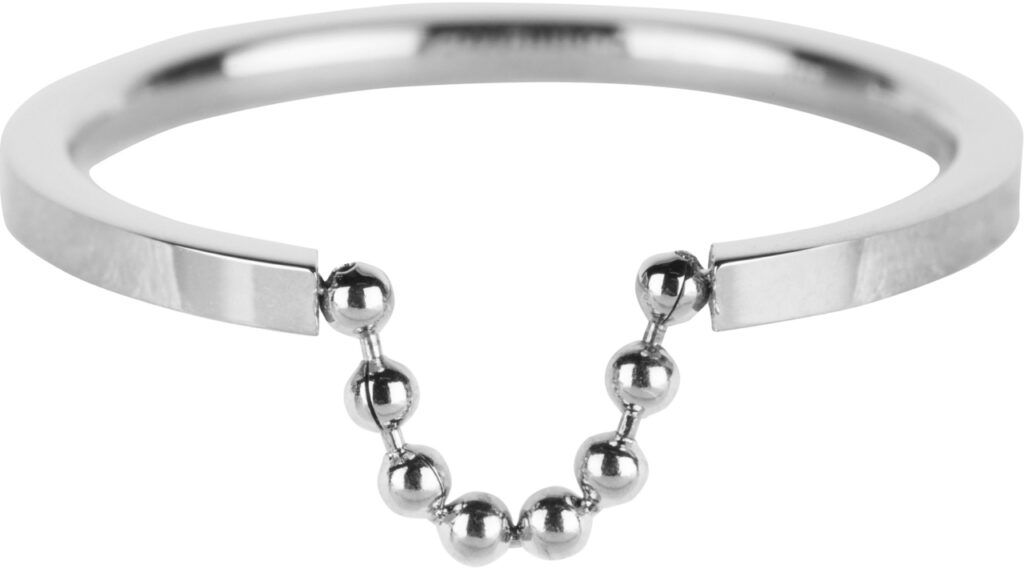 Stalen minimalistische (stapel)ring "R620 Shackle Shiny Steel", rond afgewerkte ring met diameter 1,5mm met een opening van 1cm waar aan een stijlvol kettingkje bevestigd is. Ideaal om te combineren met ring R488.