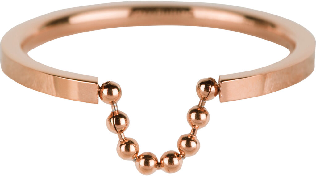 Stalen minimalistische (stapel)ring "R622 Shackle Rose Gold Steel", rond afgewerkte ring met diameter 1,5mm met een opening van 1cm waar aan een stijlvol kettingkje bevestigd is. Ideaal om te combineren met ring R488.