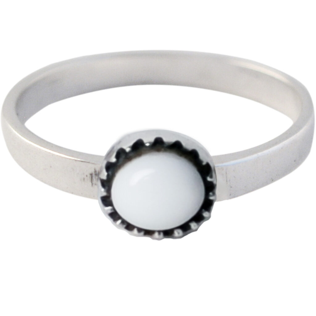 Mooie handgemaakte sterling 925 zilveren kinderring KR05 ‘Natural Stone’ White Agate met een half edelsteen van het merk KIDZ.