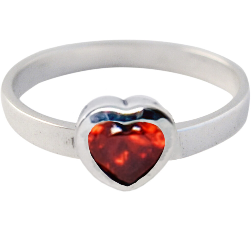 Mooie handgemaakte sterling 925 zilveren kinderring KR12 ‘Crystal Love’ Red met een zirkoon van het merk KIDZ.